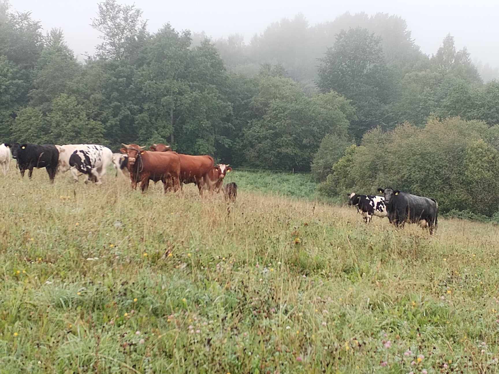 Saulius: – Dabar 56. Mėsiniai. Pieno kainos smunka, tai pieno ūkiai atrodo nebeperspektyvūs. O mėsinių galvijų rinka platesnė, gali ir užsieniui pasiūlyti, jeigu užsiveisi didesnę bandą. Pieno ūkiui reikia fermų, pastatų, didelių investicijų, jaunam žmogui sunkiau tuos pinigus paimti. O mėsiniams galvijams svarbu, kad būtų kur ganytis, kad būtų pastogė, šiaudų pakratyta. Tik ūkininkui, augintojui reikia „sportuoti“ kiekvieną dieną: eiti, eiti, eiti… Dabar kartais apie 40 tūkstančių žingsnių per dieną nueinam, ypač kai ganyklas reikia aptverti. Kai šienavimas, tai tą mėnesį daugiau traktoriuj prasėdi, bet tuomet stengies dideles statines vandens paruošt, ėdalo, kad tik kuo mažiau reiktų judėjimo. Tada jau visi keturi traktoriai paruošti, prie kurių sukabinti šienapjovė, vartytuvas, presas ir plėvelės vyniotuvas – paeiliui kuri ir važiuoji. Šiemet žolės buvo mažai, tai sunkiau, daugiau investicijų reikėjo, daugiau kuro išdeginta. Dabar, atrodo, drėgmės yra, o pavasarį nežinia kas bus. Jei nebus drėgmės, nebus ir žolės. Stengiamės šerti natūraliais pašarais, kad pievos būtų kuo natūralesnės.