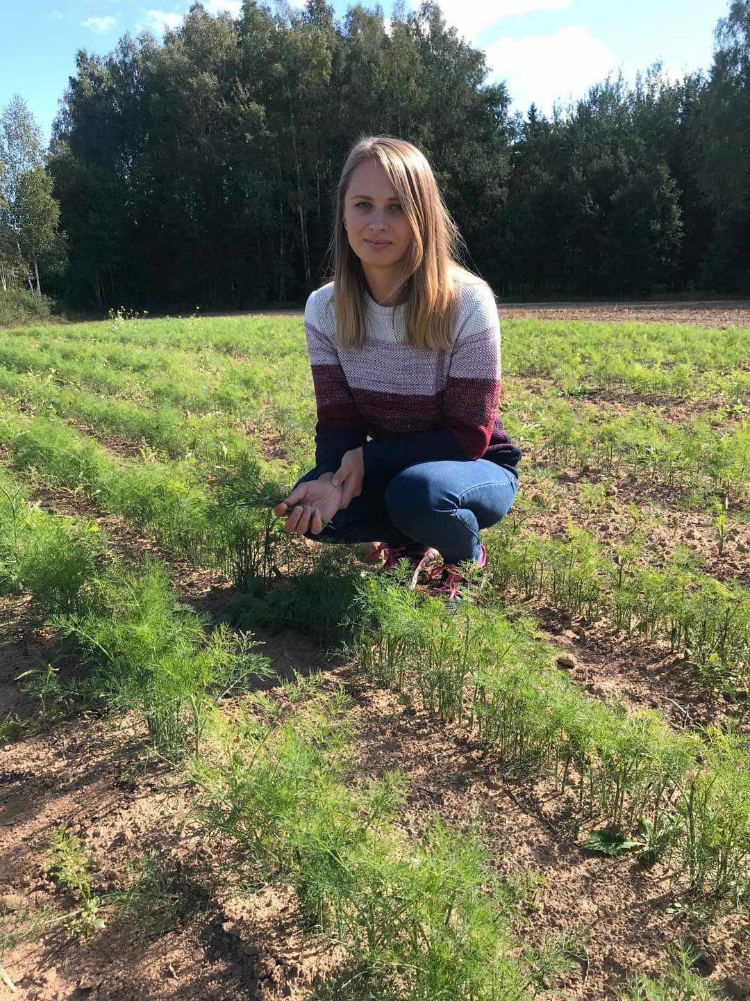 Vyras jau augino grūdinę kultūrą. Norėjome plėstis, gauti ES paramą įsigyti reikiamai technikai, tam reikėjo kultūros, kuri turi didesnį VED (valdos ekonominis dydis svarbus teikiant paraiškas paramai). Pasidomėję sužinojome, kad Lietuvoje nėra labai daug krapų augintojų, kas mažina konkurenciją ir didina realizavimo galimybę. Krapų auginimu užsiimame trečius metus. Šiais metais planuojame apsėti apie 7 hektarus. Praėjusiais metais nuėmėme apie 5-6 tonas krapų.