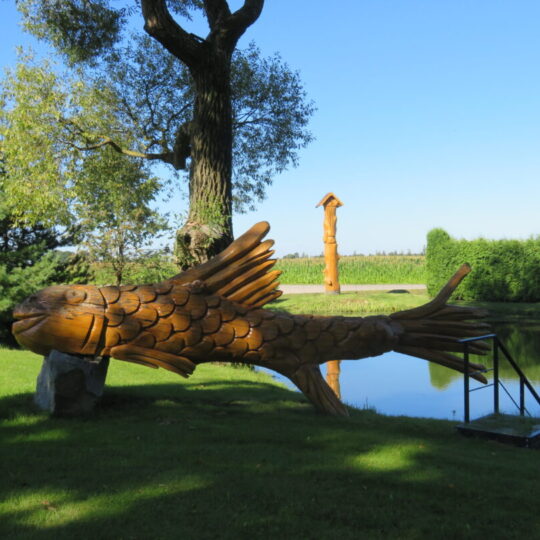 Pravažiuodamas pro Žydrūnės ir Sauliaus Jasinevičių sodybą Misiūniškio kaime, šalia Rokiškio, gali apsigauti. Jeigu ne saulėje blizgantys grūdų bokštai ir iš tolėliau matomi didžiuliai fermų pastatai, žiūrėdamas nuo kelio pamanytum, kad tai kaimo turizmo sodyba su galingais ąžuolais, medžio skulptūromis, tvenkiniu. Anot šeimininkų, įsukę į kiemą, svečiai nebuvėliai suabejoja, kuris pastatas yra pieno perdirbimo cechas, o kuris – gyvenamasis namas. Tai nereiškia, kad svečiai nenuovokūs. Juos tikriausiai suklaidina išpuoselėta aplinka, net palei ūkinio pastato sieną auginamos gėlės. Sodybą puošia medžio skulptorių Vidmanto Zakarkos iš Panemunėlio ir Edvardo Tito iš Miežiškių (Panevėžio r.) darbai. „Mums į kaimo turizmo sodybas važiuoti nebereikia, čia viskas yra“, – šypsosi Žydrūnė.