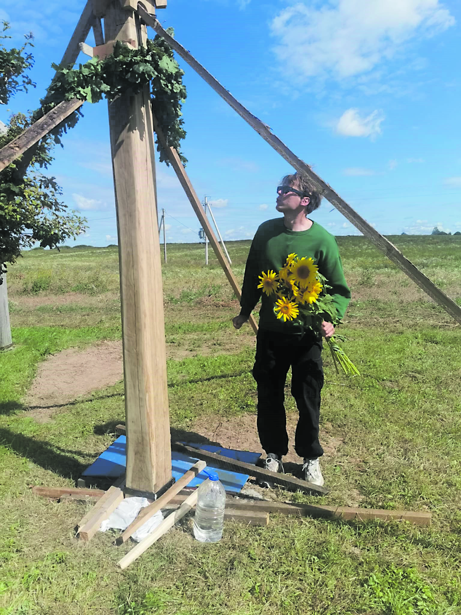 – Ne, ją jau darys kalvis. Aš to nemoku. Ir taip buvo nemenkas iššūkis pačiam daryti stogastulpį. Bet tai dar labiau sustiprino mano ryšį su šia vieta. Norisi, kad ji taptų vieta žmonėms. Kad čia kažkas vyktų. Buvo čia Jurginių (Jorės) šventė, susirinko daug jaunimo iš Pakriaunių, Trumpiškių, dabar, atidengiant šį stogastulpį, buvo atvažiavę iš Rokiškio muzikos mokyklos vaikai. Gal tai įkvėps ir kitus. Aš pats vaikystėje nesidomėjau etnografija, nors augau prie Vingio parko, kur vykdavo ir Dainų šventės, ir folkloro festivaliai. Bet prisiminimai iš kelionių su seneliais po kurio laiko atrodo visai kitaip ir tampa įkvėpimo šaltiniu. Gal taip nutiks ir tiems vaikams, kurie čia dalyvauja ar lankysis ateityje.