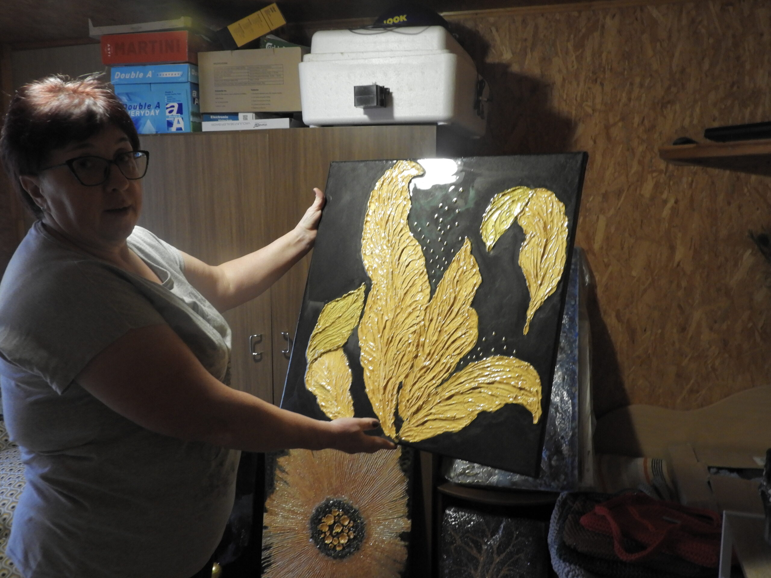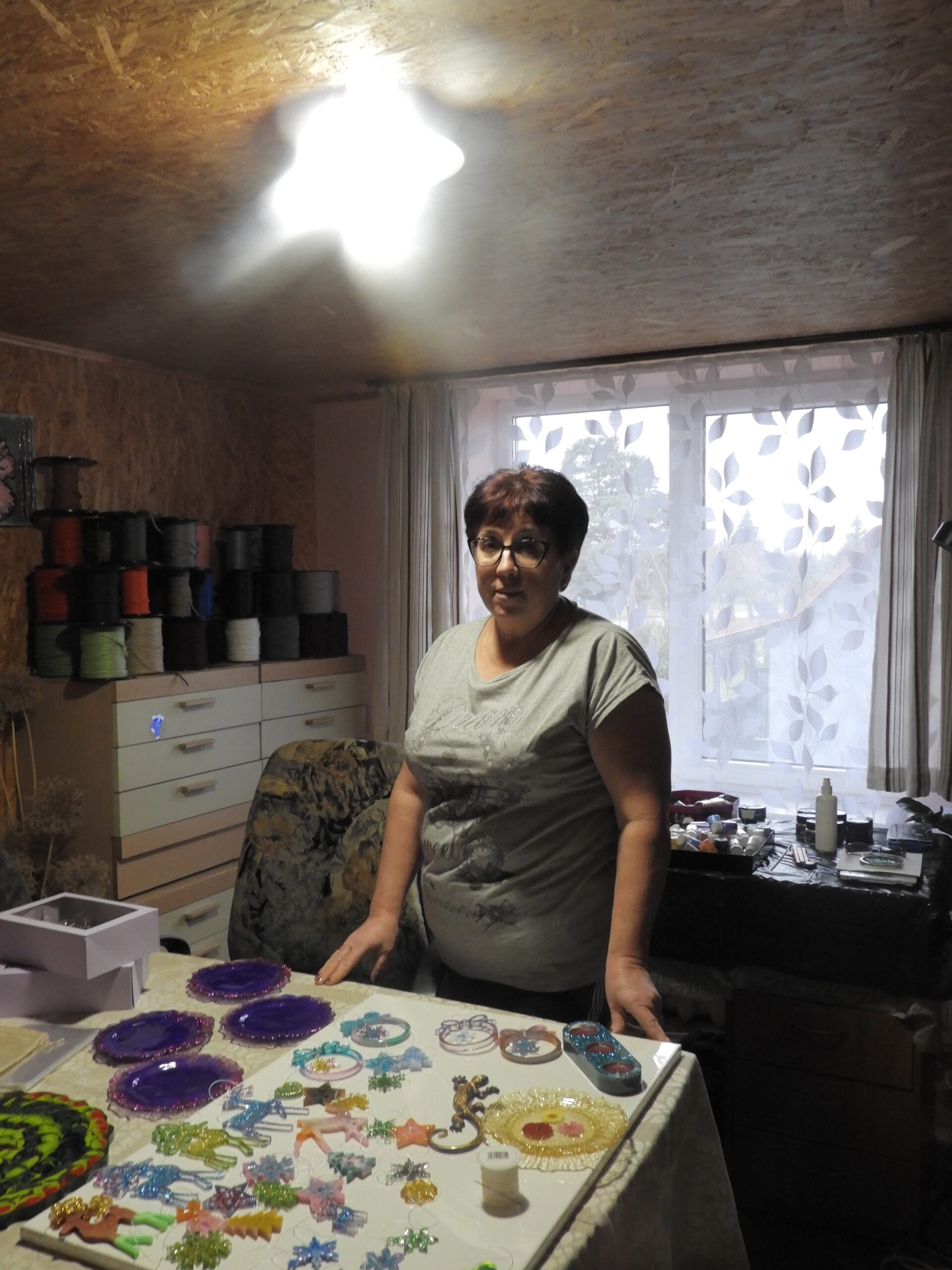 Anksčiau Lena dirbo AB „Rokiškio grūdai“, bet dėl sveikatos problemų turėjo išeiti iš darbo. Užsiėmimų namie netrūksta ir be kūrybos – šeima augina povus, kelių veislių vištas, kurių tvartelyje daugiau negu septynios dešimtys, perina viščiukus. Išėjusi iš darbo, dar prieš užsikrėsdama epoksido dirbiniais, moteris pradėjo nerti rankines, kurių ir dabar kelias turi, dar anksčiau siuvinėjo – iš to laiko likę keli paveikslai ant virtuvės sienos. Tik nuo tokių smulkių darbų, sako moteris, labai vargsta akys, tad dabar tokiais rankdarbiais užsiima rečiau.