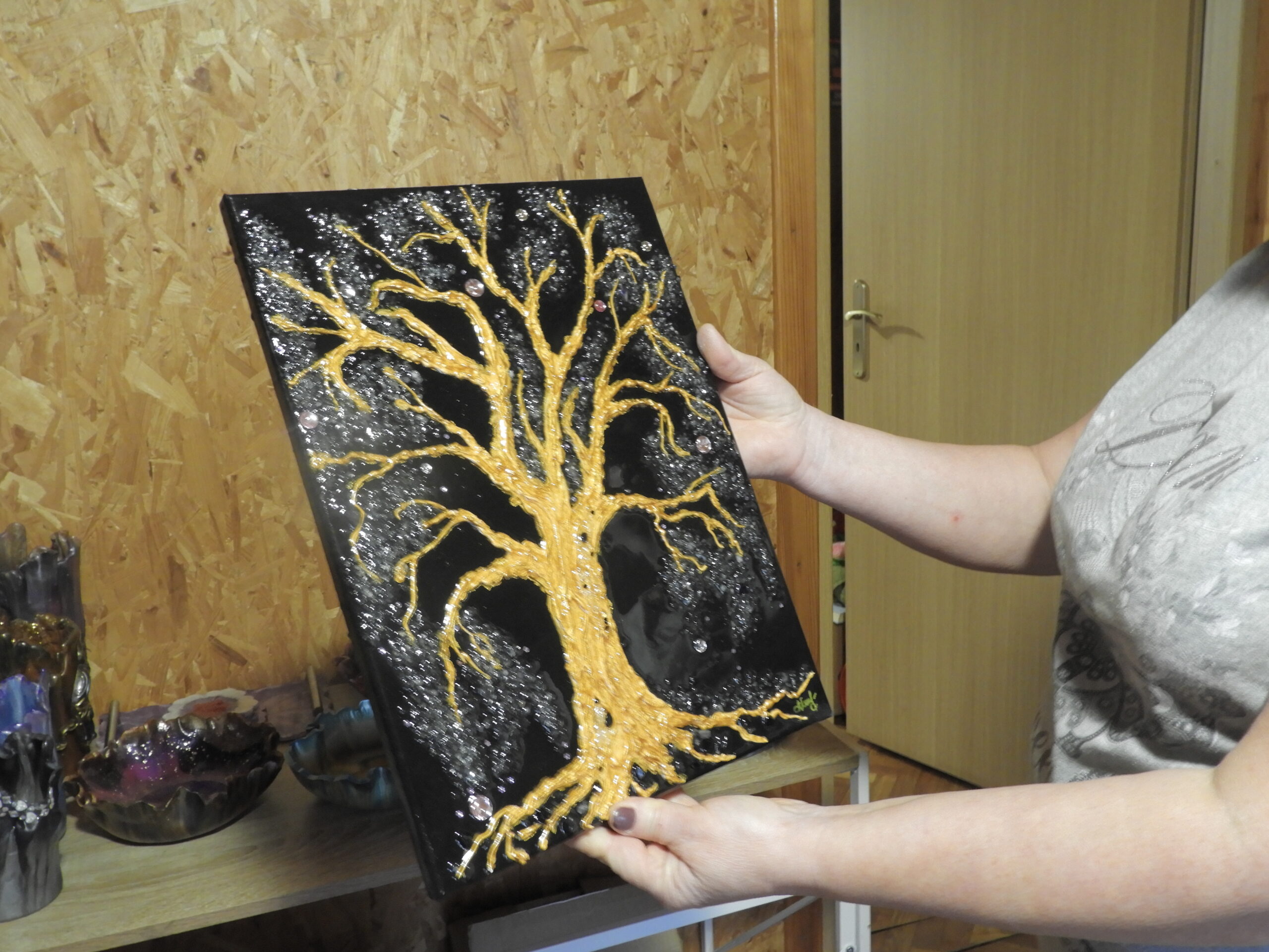 Pirmosios atsisiųstos medžiagos kainavo 50 eurų, apie kuriuos vyrui išmintingai iš pradžių nieko nesakė. Pati technologija nesudėtinga: skysta epoksidinė derva sumaišoma su standikliu, įmaišoma reikiamos spalvos dažų ir liejama, maišoma, pilama ant kartono ar drobės, o darant smulkesnius dirbinius – į įvairias silikonines formeles, viską dar galima papuošti įvairiomis smulkiomis detalėmis, kurių taip pat galima įsigyti internetu. Paskui kiek daugiau negu parą laukiama, kol sustings, apdailinama – ir gaminys padarytas. Tiesa, yra kai kurių subtilybių: standiklį reikia naudoti labai atsargiai, skaičiuojat kiekvieną gramą, tad tenka suktis vos ne kaip vaistinėje. Kruopštumo reikalauja ir spalvų maišymas, kartais gerokai užtrunka, kol išgaunama norima spalva. Pats spalvinimas vysta naudojant feną arba pirštines, nes jei bandysi daryti tai plikomis rankomis ar teptuku, jų paskui niekaip neatplausi. Žodžiu, kruopštaus darbo įdėti tenka daug.
