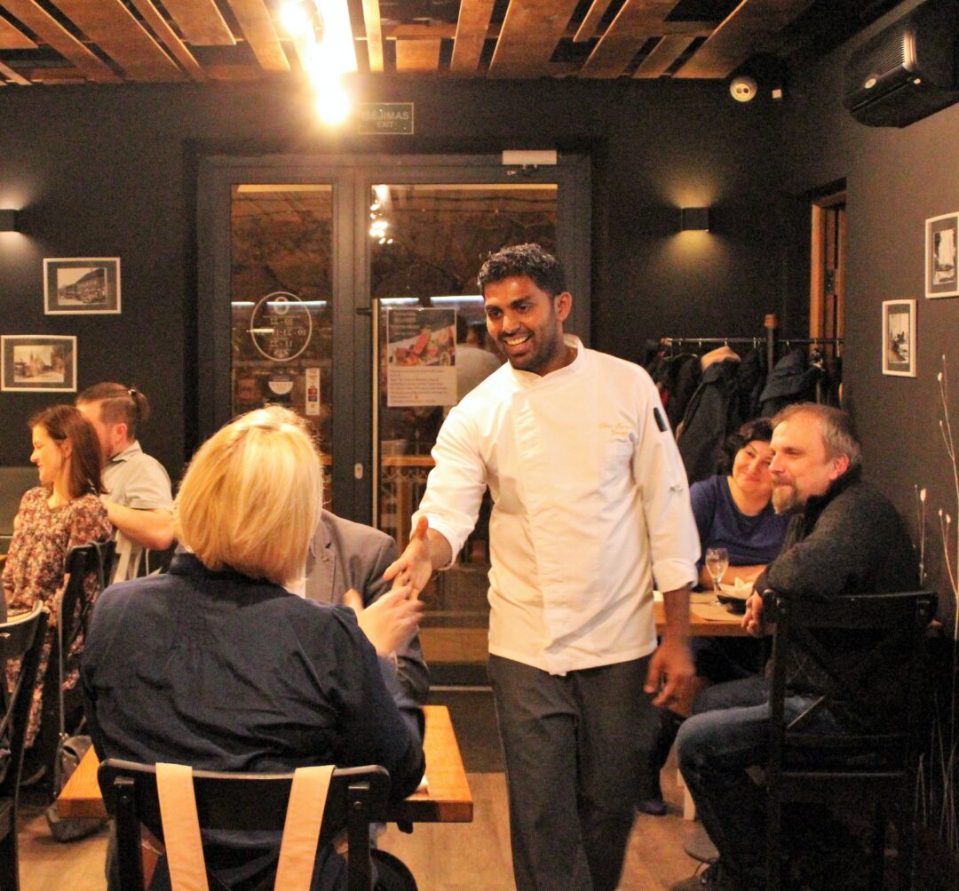 Dilanas kavinės „Senas grafas“ svečiams parengė keturių patiekalų vakarienę, kiekvieną patiekalą pakomentuodamas, pasidomėdamas, ar skanu, kokius prieskonius, kokį vyraujantį skonį ragautojai jaučia.