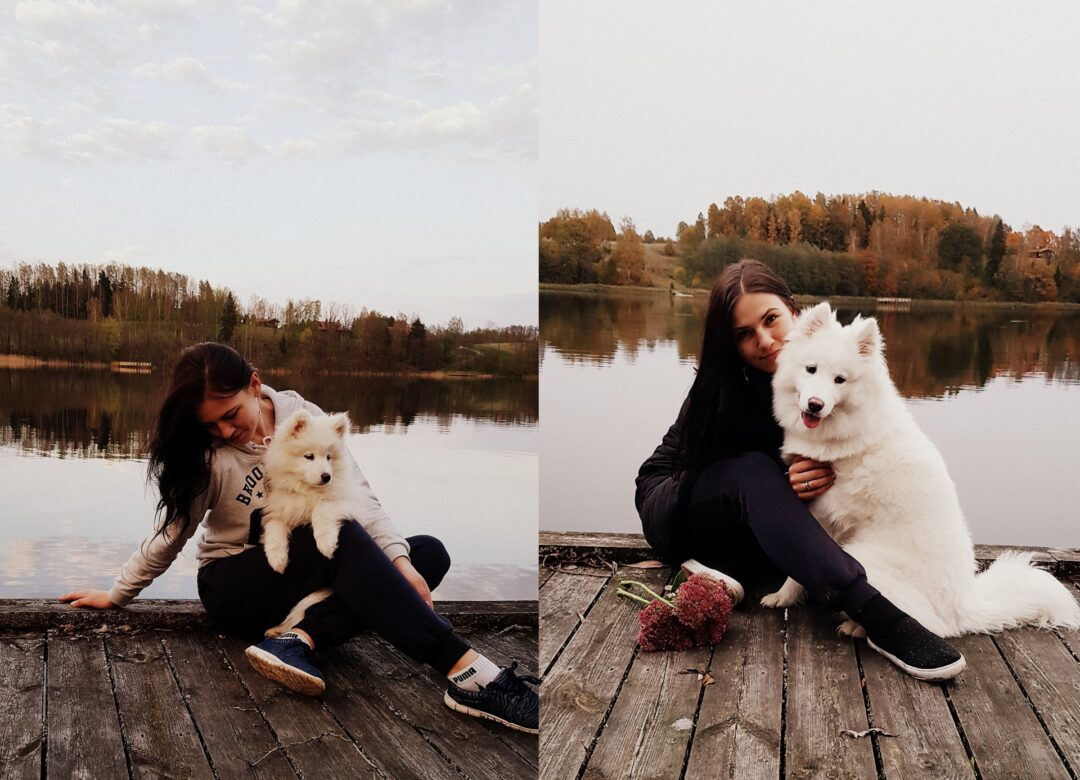 „Įsigyti samojedų šunį nusprendėme bendru sutarimu, nors būtent ši veislė buvo labiau vyro svajonė. Rinkomės iš kelių veislių: auksaspalvio retriverio, labradoro, amerikiečių akitos. Tačiau gilindamiesi daugiausia pliusų skyrėme būtent samojedui: draugiškas socialus šuo, aktyvus ir turintis daug judėti (visada išjudins ir šeimininkus). Samojedai rekomenduojami žmonėms, kurie mėgsta sportuoti ir leisti laiką lauke, komandų mokosi noriai ir greitai. Tai šeimos šuo, norintis būti su šeimininkais, jiems būdingas vaikiškas gyvenimo džiaugsmas. Jie visada atrodo laimingi ir patenkinti. Amerikoje šios veislės šunys neretai rekomenduojami kaip vaistas nuo depresijos“, – pasakoja Dovilė.