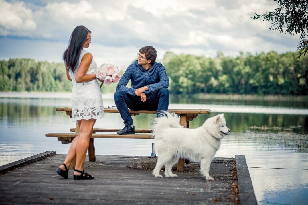 Bene daugiausiai praeivių žvilgsnių sulaukia samojedų veislės balti šunys. Būtent tokį augina Dovilė Čepulienė su vyru Ainiu. Pasak Dovilės, šuo – tai dovana vyrui jo 25-ojo gimtadienio proga.